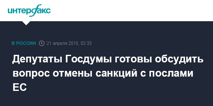 Депутаты Госдумы готовы обсудить вопрос отмены санкций с послами ЕС