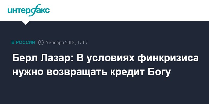 Берл Лазар: В условиях финкризиса нужно возвращать кредит Богу