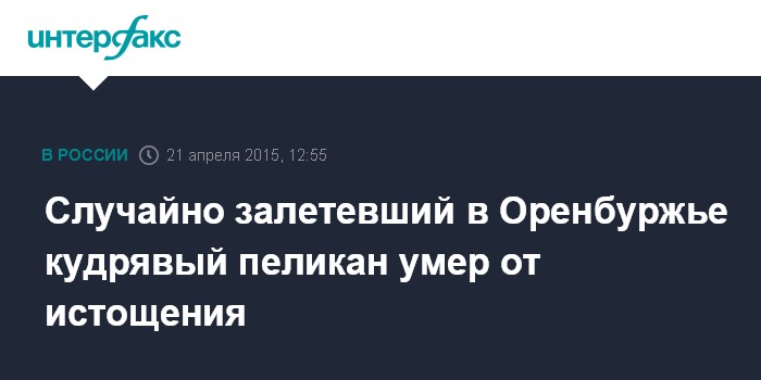 Случайно залетевший в Оренбуржье кудрявый пеликан умер от истощения