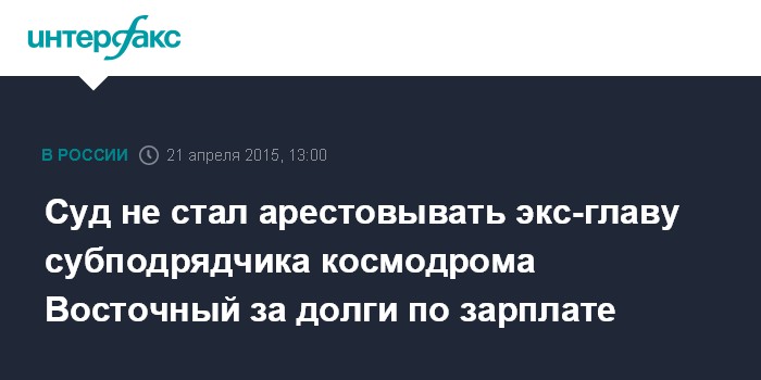 Суд не стал арестовывать экс-главу субподрядчика космодрома Восточный за долги по зарплате