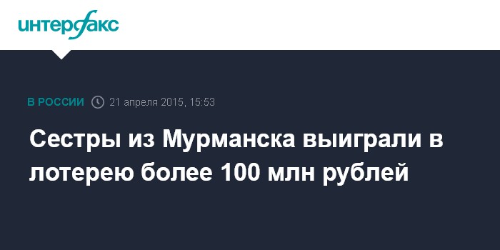 Сестры из Мурманска выиграли в лотерею более 100 млн рублей
