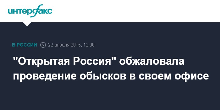 Москва. 22 апреля. INTERFAX.RU - Организация "Открытая Россия" обжаловала проведение обысков в своем офисе, сообщил в среду "Интерфаксу" адвокат Сергей Бадамшин.
