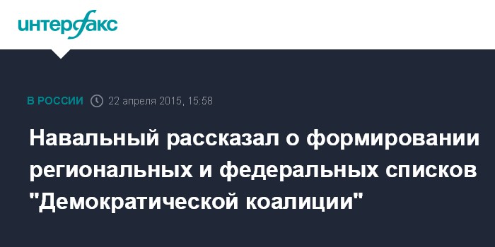 Москва. 22 апреля. INTERFAX.RU - Представители "Демократической коалиции" намерены выдвинуть на выборы в текущем году своих кандидатов в трех регионах России, заявил лидер "Партии прогресса" Алексей Навальный.