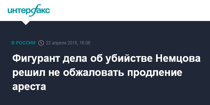 Москва. 22 апреля. INTERFAX.RU - Защита Анзора Губашева, фигуранта уголовного дела об убийстве оппозиционного политика Бориса Немцова, не будет обжаловать решение о продлении его ареста.