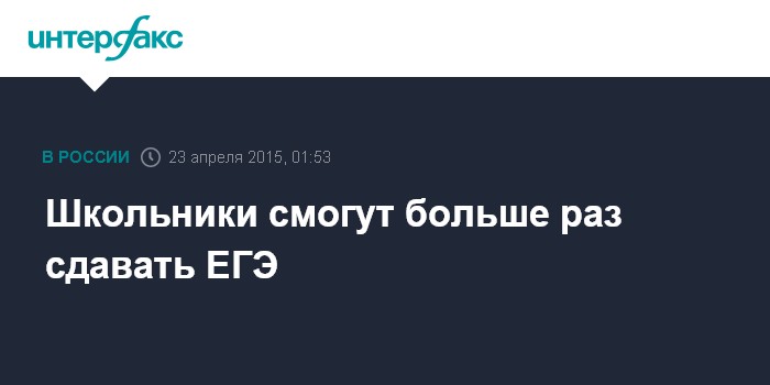 Москва. 23 апреля. INTERFAX.RU - Минобрнауки подготовило изменения в уже утвержденное расписание проведения ЕГЭ по каждому предмету в 2015 году, согласно которому выпускники 11-х классов смогут пересдать математику и русский язык в сентябре и октябре, сообщают "Известия".