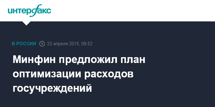 Москва. 23 апреля. INTERFAX.RU - Минфин РФ предлагает правительству вернуться к идее оптимизации расходов на госучреждения образования, здравоохранения и культуры путем их укрупнения и сокращения персонала.