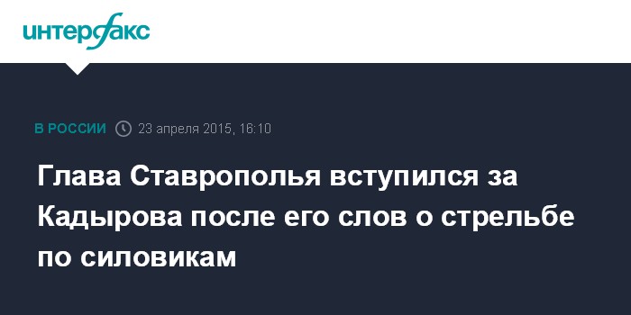 Москва. 23 апреля. INTERFAX.RU - Главу Чеченской Республики Рамзана Кадырова, якобы разрешившего чеченцам стрелять по силовикам из других регионов, не так поняли, заявил губернатор Ставропольского края Владимир Владимиров.
