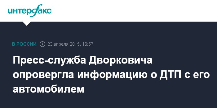 Москва. 23 апреля. INTERFAX.RU - Пресс-секретарь вице-премьера РФ Аркадия Дворковича Алия Самигуллина опровергла информацию, опубликованную рядом СМИ, о том, что служебный автомобиль чиновника попал в ДТП.