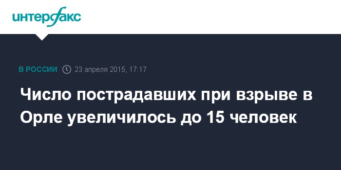 Число пострадавших при взрыве в Орле увеличилось до 15 человек