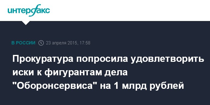 Прокуратура попросила удовлетворить иски к фигурантам дела "Оборонсервиса" на 1 млрд рублей