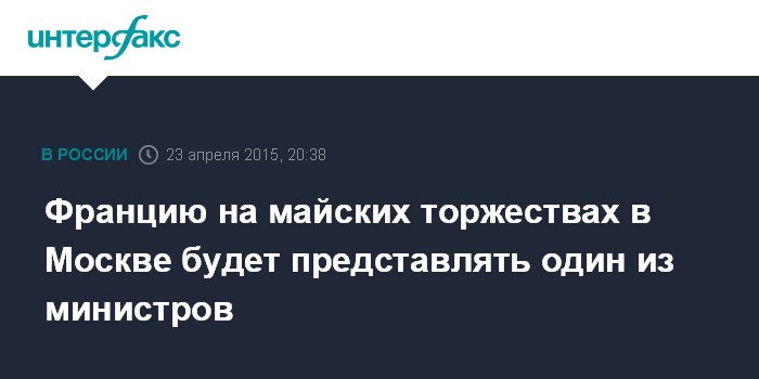 Москва. 23 апреля. INTERFAX.RU - На мероприятиях в честь Дня Победы 9 мая в Москве Франция, скорее всего, будет представлена на уровне министра, сообщил "Интерфаксу" в четверг источник во французском посольстве в Москве.