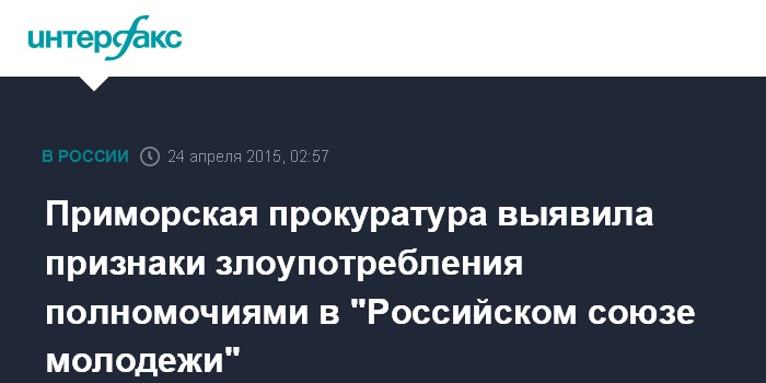 Приморская прокуратура выявила признаки злоупотребления полномочиями в "Российском союзе молодежи"