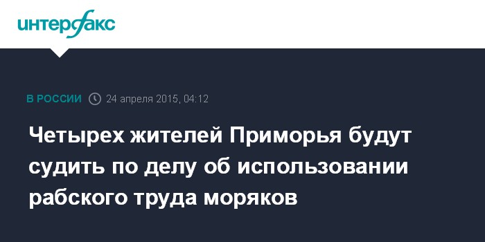 Москва. 24 апреля. INTERFAX.RU - Уголовное дело об использовании рабского труда российский моряков направлено во Фрунзенский районный суд Владивостока.