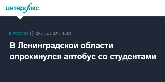 Москва. 25 апреля. INTERFAX.RU - Туристический автобус, в салоне которого находились более 40 студентов, опрокинулся на трассе под городом Волхов в Ленинградской области, сообщили "Интерфаксу" в региональном управлении ГИБДД в субботу.