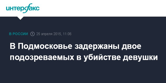 Ранее в субботу источник в правоохранительных органов сообщил "Интерфаксу", что тело 15-летней задушенной девушки найдено в подмосковном Жуковском.
