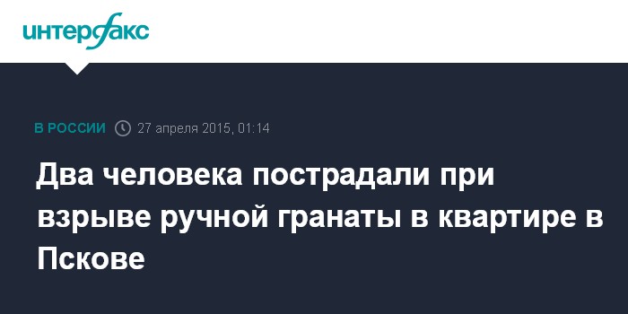 "Около 00.00 мск понедельника поступило сообщение о взрыве в одной из квартир в доме 48 на улице Новоселов в Пскове. По предварительной версии, в квартире взорвалась ручная граната", - рассказал сотрудник пресс-службы полиции.