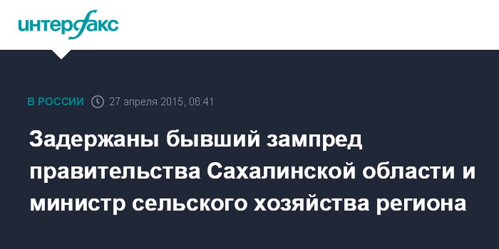 Задержаны бывший зампред правительства Сахалинской области и министр сельского хозяйства региона