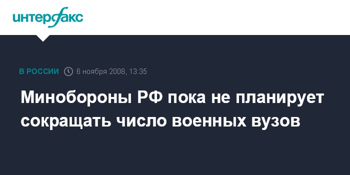 Москва. 6 ноября. INTERFAX.RU - В рамках формирования нового облика российской армии пока не планируется сокращать количество военных вузов, сообщил статс-секретарь - замминистра обороны генерал армии Николай Панков.
