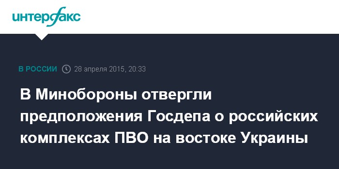В Минобороны отвергли предположения Госдепа о российских комплексах ПВО на востоке Украины