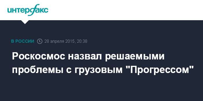 Москва. 28 апреля. INTERFAX.RU - Ситуация с грузовым кораблем "Прогресс" находится под контролем, заявил во вторник представитель Роскосмоса Игорь Буренков.