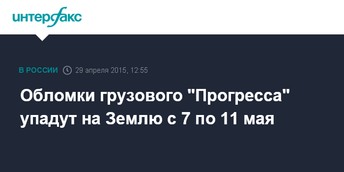 Обломки грузового "Прогресса" упадут на Землю с 7 по 11 мая