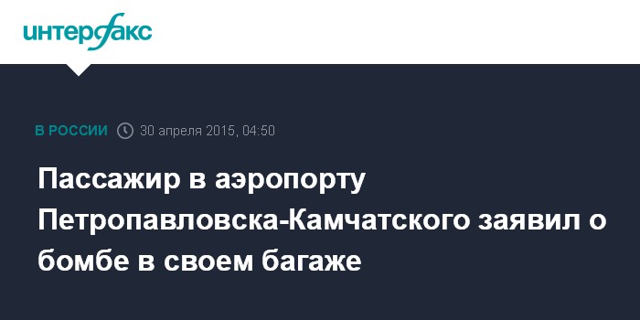 Пассажир в аэропорту Петропавловска-Камчатского заявил о бомбе в своем багаже