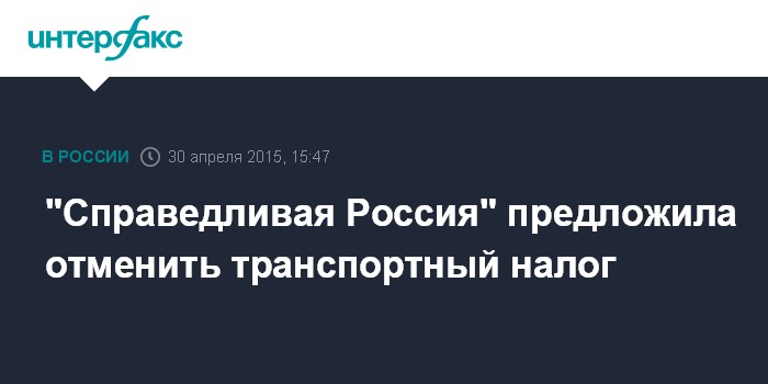Москва. 30 апреля. INTERFAX.RU - Глава фракции "Справедливая Россия" Сергей Миронов и его заместитель Олег Нилов внесли в Госдуму законопроект об отмене транспортного налога. Текст законопроекта опубликован в электронной базе документов нижней палаты парламента.