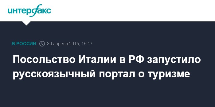 Москва. 30 апреля. INTERFAX.RU - Рим заинтересован в углублении взаимодействия с Москвой в туристической сфере, для ускорения этого процесса итальянской стороной запущен русскоязычный портал о туризме в Италии, сообщили "Интерфаксу" в посольстве Италии в РФ.