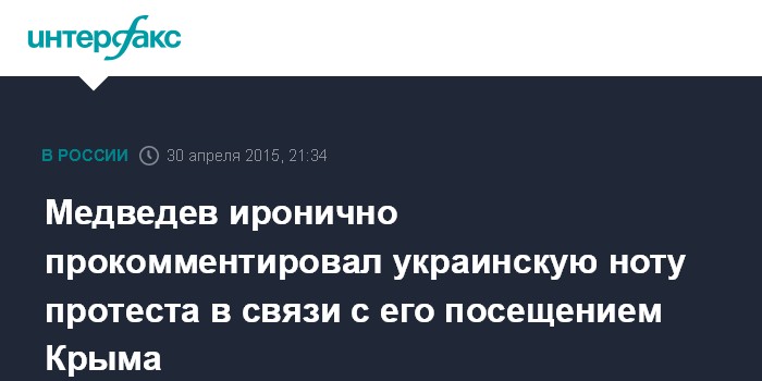Москва. 30 апреля. INTERFAX.RU – Премьер-министр Дмитрий Медведев отреагировал на ноту протеста МИД Украины в связи с его посещением Крыма.