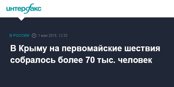 Москва. 1 мая. INTERFAX.RU - Более 35 тыс. человек участвуют в первомайском шествии в Симферополе, сообщил первый вице-премьер Республики Крым Михаил Шеремет.