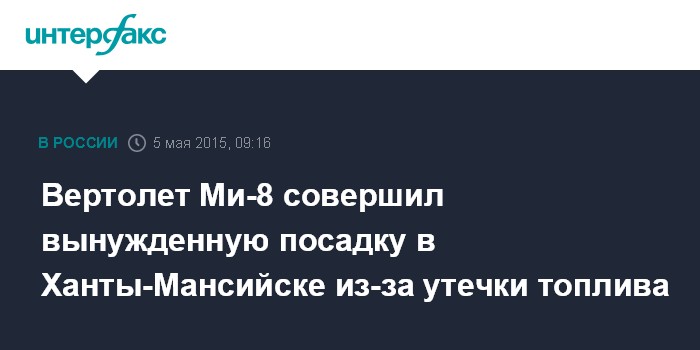 "По предварительным данным, командир воздушного судна принял решение произвести вынужденную посадку в аэропорту Ханты-Мансийска в связи с протечкой топлива из дополнительного бака, установленного в салоне грузового вертолета", - говорится в сообщении.