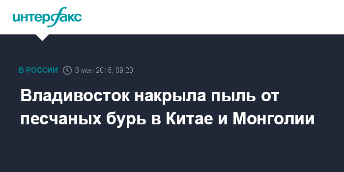 Москва. 6 мая. INTERFAX.RU - Пылевое облако, пришедшее со стороны Китая и Монголии, накрыло Владивосток и ряд районов Приморья, сообщили "Интерфаксук" в пресс-службе Примгидромета.