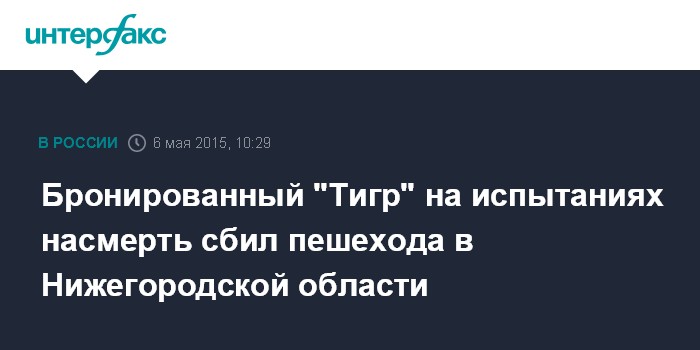 Бронированный "Тигр" на испытаниях насмерть сбил пешехода в Нижегородской области