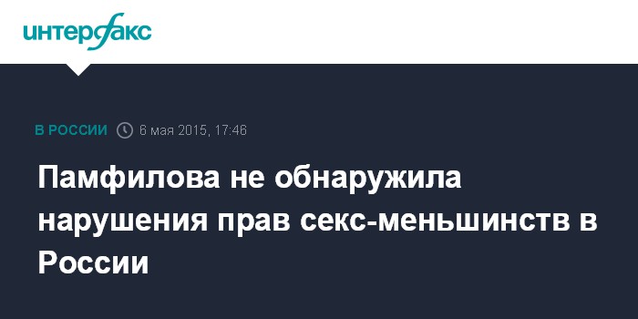 Москва. 6 мая. INTERFAX.RU - В России нет массового нарушения прав сексуальных меньшинств, говорится в докладе уполномоченного по правам человека в РФ Эллы Памфиловой за 2014 год.