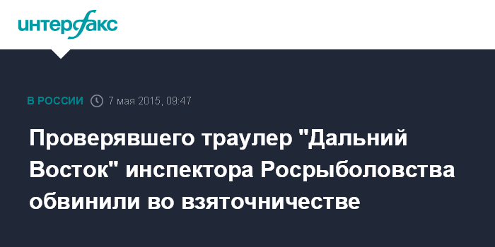 Проверявшего траулер "Дальний Восток" инспектора Росрыболовства обвинили во взяточничестве