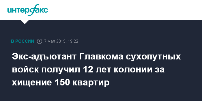 Экс-адъютант Главкома сухопутных войск получил 12 лет колонии за хищение 150 квартир