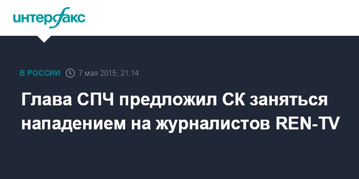 Москва. 7 мая. INTERFAX.RU - Глава президентского Совета по правам человека (СПЧ) Михаил Федотов считает, что расследованием нападения на журналистов телеканала REN-TV в столичном зоопарке должен заняться Следственный комитет России.