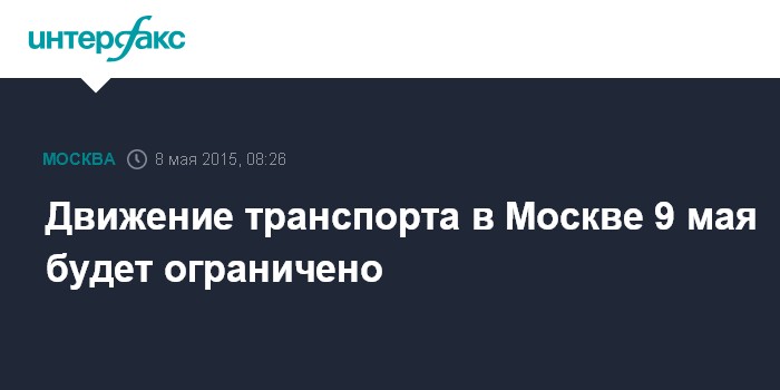 Москва. 8 мая. INTERFAX.RU – Ограничения движения для автомобилистов в связи с проведением парада Победы на Красной площади и других праздничных мероприятий вводятся с 6:00 9 мая, сообщает департамент транспорта столицы.