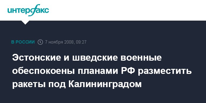 Таллин. 7 ноября. INTERFAX.RU - Командующие Вооруженными силами Швеции и Эстонии выразили озабоченность намерением России разместить в Калининградской области ракетный комплекс.