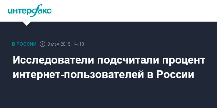 Москва. 8 мая. INTERFAX.RU - Почти три четверти российских домохозяйств имеют доступ к глобальной сети, причем половина из них пользуются интернетом ежедневно, выяснили эксперты Института статистических исследований и экономики знаний (ИСИЭЗ) НИУ ВШЭ в рамках мониторинга информационного общества.
