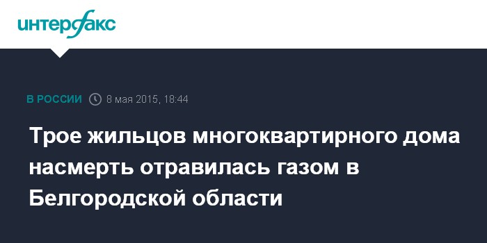 Москва. 8 мая. INTERFAX.RU - Двое мужчин и женщина погибли, еще пятеро, в том числе ребенок, госпитализированы с признаками отравления пропаном в городе Старый Оскол Белгородской области.
