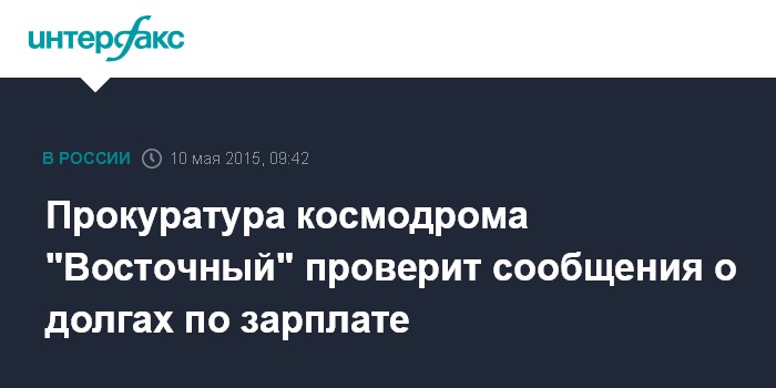 Москва. 10 мая. INTERFAX.RU - Прокуратура космодрома "Восточный" получила от бывших рабочих ООО "Стройиндустрия-С" заявление с требованием разобраться с долгами по зарплате, сообщил "Интерфаксу" в воскресенье прокурор космодрома Павел Вепрев.