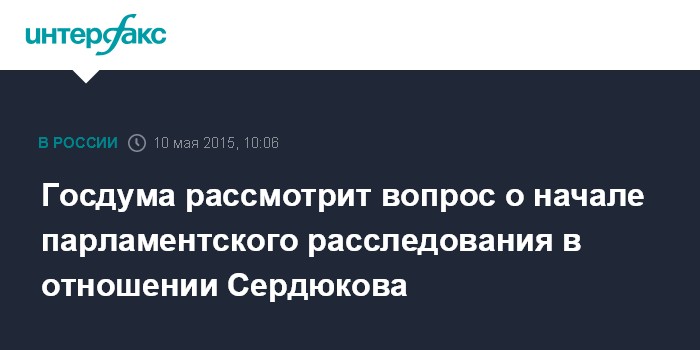Госдума рассмотрит вопрос о начале парламентского расследования в отношении Сердюкова