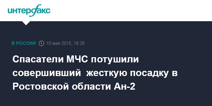 Как сообщалось ранее, информация о грубой посадке легкомоторного самолета Ан-2 поступила в 14:40 по Москве. К месту происшествия близ поселка Ясный выехала оперативная группа ГУ МЧС РФ по Ростовской области.