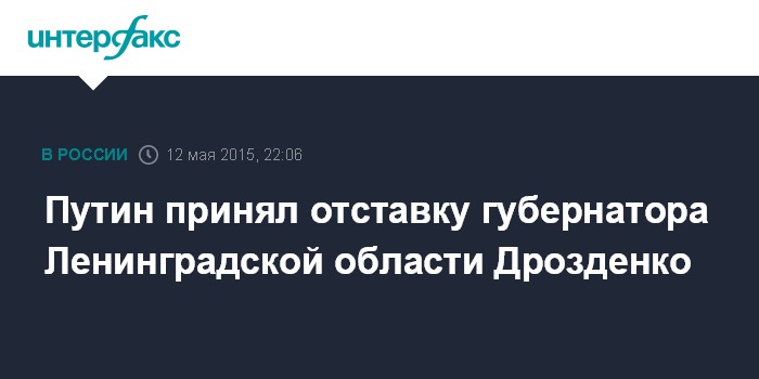 Путин принял отставку губернатора Ленинградской области Дрозденко