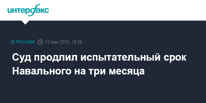 Москва. 13 мая. INTERFAX.RU - Люблинский суд Москвы продлил Алексею Навальному испытательный срок на три месяца по делу "Кировлеса" для предотвращения повторных административных нарушений.