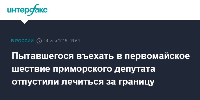 Пытавшегося въехать в первомайское шествие приморского депутата отпустили лечиться за границу