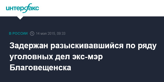 Задержан разыскивавшийся по ряду уголовных дел экс-мэр Благовещенска