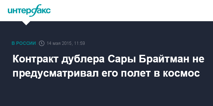 Контракт дублера Сары Брайтман не предусматривал его полет в космос
