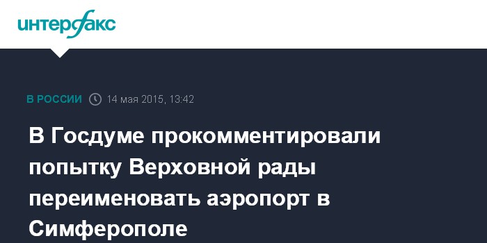 Москва. 14 мая. INTERFAX.RU - В Госдуме расценили как вмешательство в дела РФ попытку Верховной рады Украины переименовать аэропорт в Симферополе.